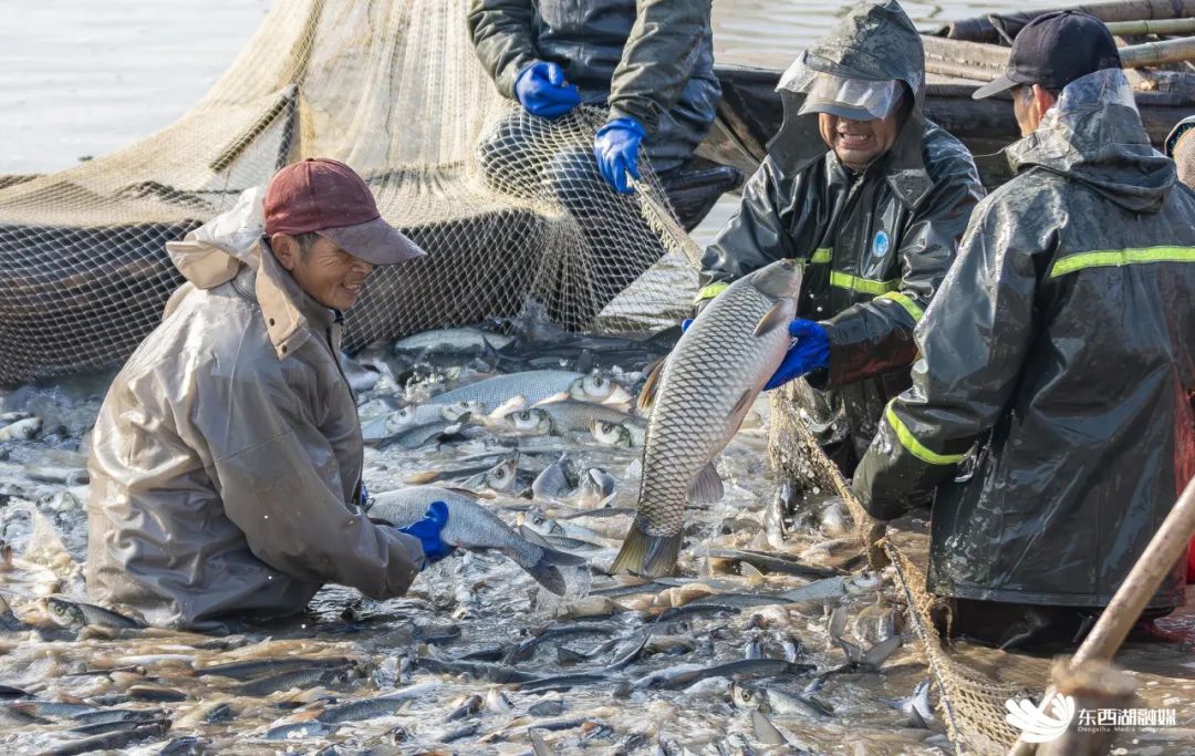 万亩渔业绿色循环试点基地开捕起鱼。