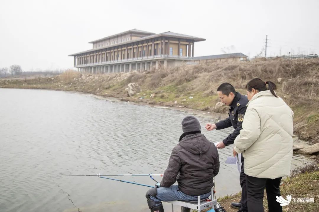 府河两岸水草肥美,不时有市民携带渔具前来垂钓。当天上午,区农业农村局、区公安分局、区市场监督管理局、沿府河各街道办(社管办)开展了联合执法行动,整治府河非法捕捞及违规垂钓行为。执法人员对府河沿线进行巡查,发放禁渔宣传册,呼吁大家严格遵守一人一竿一线一钩(单钩)规定。
