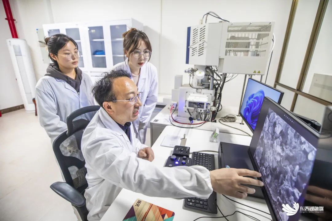 武汉轻工大学重点实验室主任王学东教授(中)带领学生开展研究。