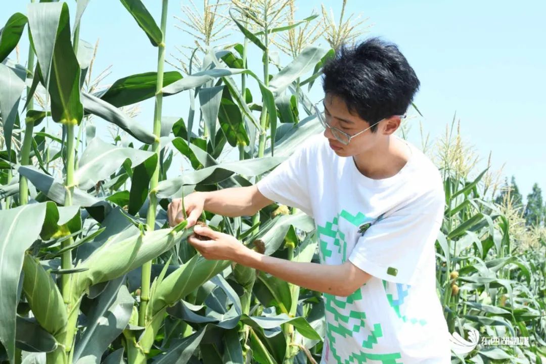 高标准农田里,农户拨开玉米穗检查玉米生长情况。