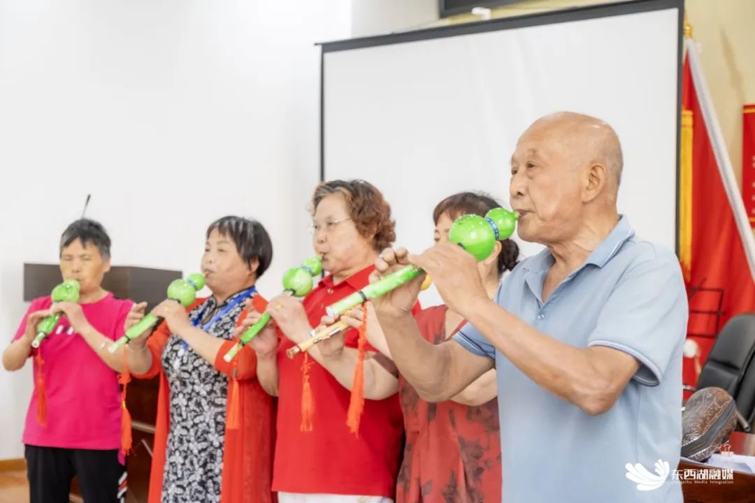 “周一打鼓、周二唱歌、周三打鼓、周四吹葫芦丝、周五给小学生上课。”虞旰卿每天的时间都被安排满了。几乎每次上课,他都会带着老伴一起来。