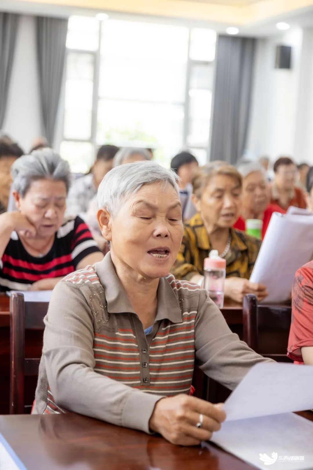 “我想用天边的云彩,剪成一朵美丽的花瓣。”近日,走马岭街走集镇社区群众服务中心,传出阵阵优美的歌声。一位位银发学生坐在课桌前,他们平均年龄约70岁,正跟着78岁的老师虞旰卿认真吊嗓子。