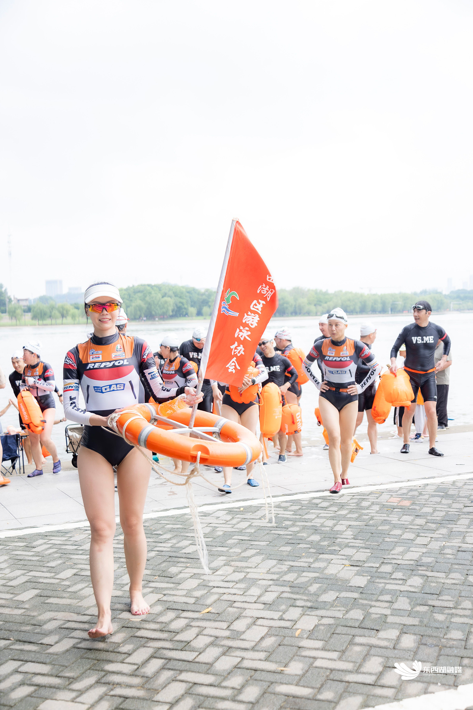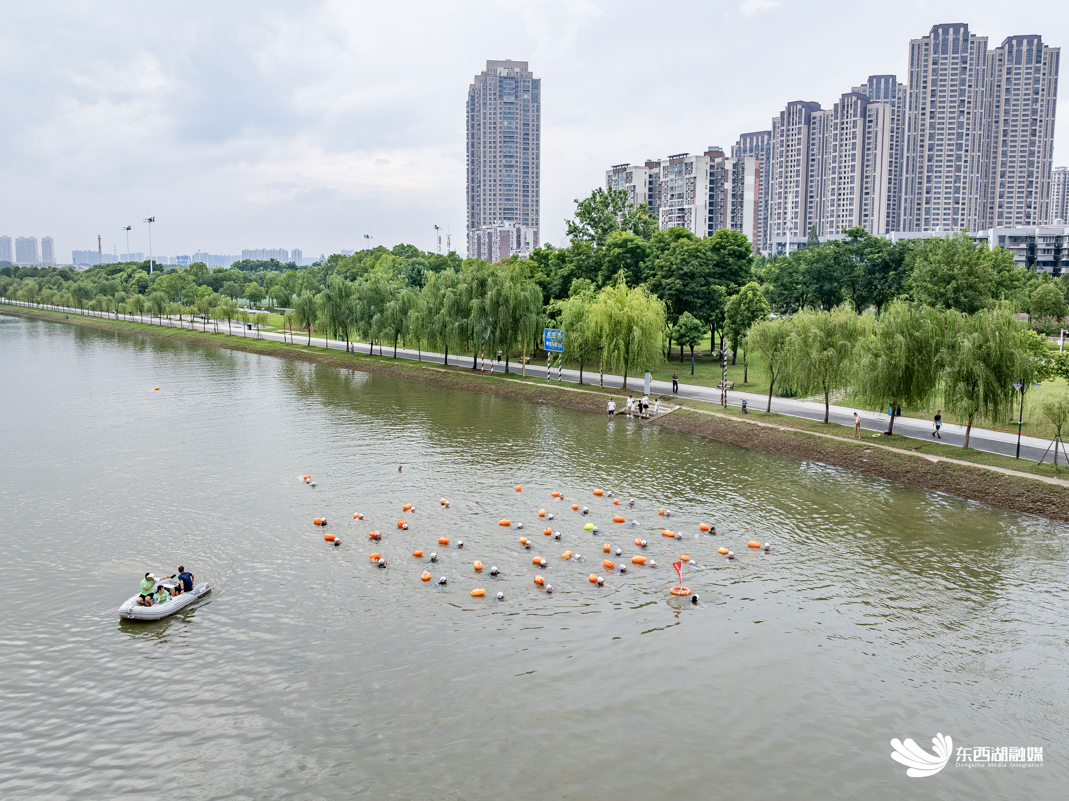 “今年是我参加渡江节的第十个年头,感触最深的就是现在东西湖可以玩水的地方越来越多,游泳这项运动的普及率也越来越高,更多的年轻人开始加入我们。”东西湖区游泳协会秘书长徐红介绍,本次渡江方队的队员们平均年龄为35岁,近30%的新人是首次参加渡江节活动。