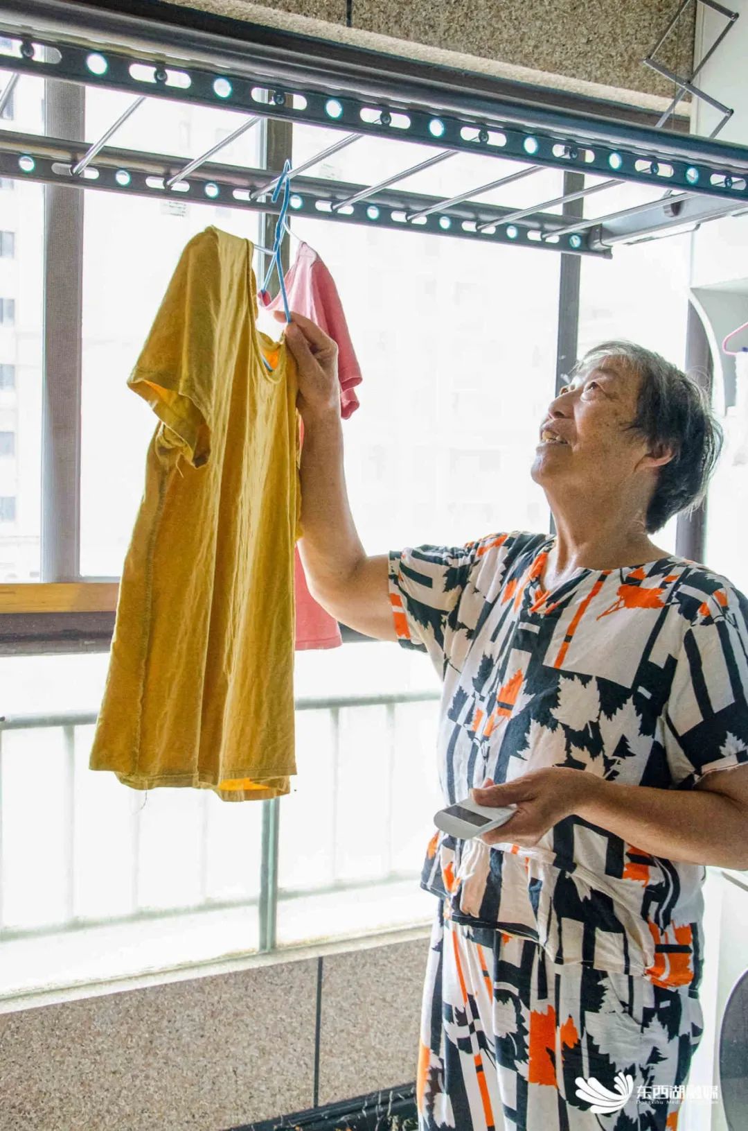 “阿姨,适老化改造后,还用得习惯吗?”“习惯,很好用!”走进屋子,家里收拾得整洁干净,卫生间地面上的防滑垫代替了光滑的瓷砖,68岁的许婆婆再不用担心洗澡时摔跤。她略有遗憾地说:“卫生间的面积比较小,就没有做过多的改造。”她转过身来,走到阳台,手中拿着遥控器轻轻一按,晾衣架缓缓降落,便能轻松地将一件件刚洗好的衣服挂上晾衣架。