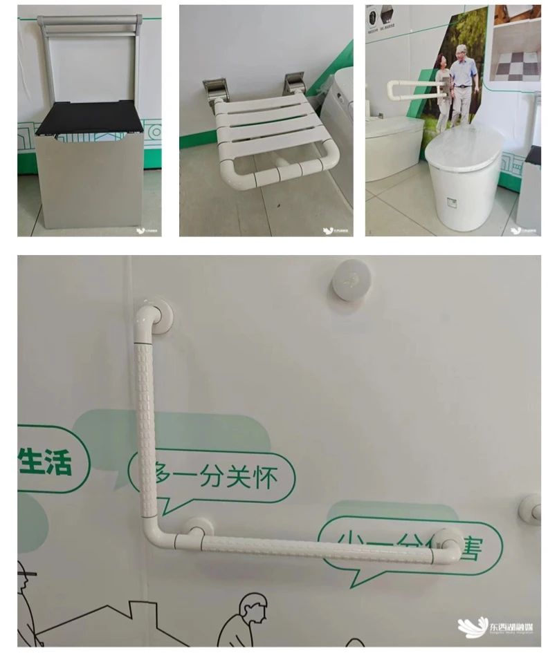 “现在卫生间洗澡的地方装上了淋浴凳和防滑垫,非常实用,马桶边也有扶手,起身能借力,也不担心摔跤了!”此前,卫生间内没有做防滑处理,存在一定的安全隐患。“我已经快70岁了,有很严重的风湿病,腿脚无力,每次使用完马桶后,起身都比较困难,太不方便了。”李爹爹边说边指着有些变形的膝关节。