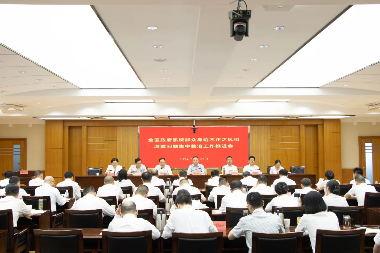 8月22日,区委副书记、区长周明主持召开全区政府系统群众身边不正之风和腐败问题集中整治工作推进会,强调要深入学习贯彻党的二十届三中全会精神,落实中央纪委国家监委有关部署,按照省委、省政府、市委、市政府工作要求和区委工作安排,超常规纵深推进政府系统集中整治。