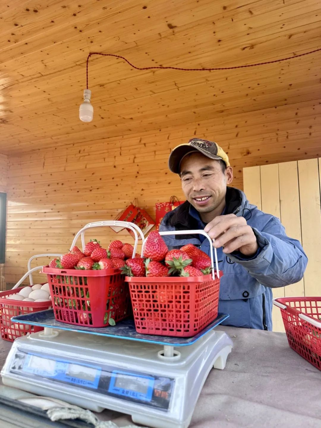 有了草莓亭,种植户有了摆放草莓的舒适地方。