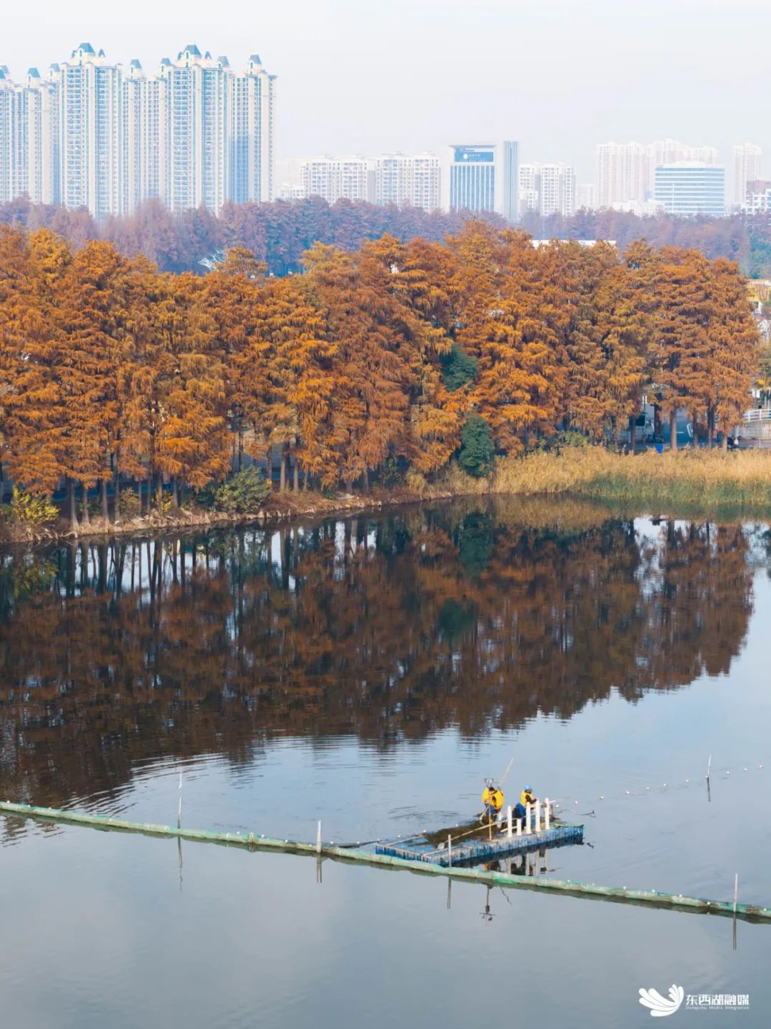 近日,天气晴好,不少市民在东大湖绿道徒步、游玩,记者看到,岸边的水杉一片棕红,一群群鸟儿正在树林间栖息,清脆的鸟鸣声,伴随着深冬的暖阳,让这个冬天格外美好。