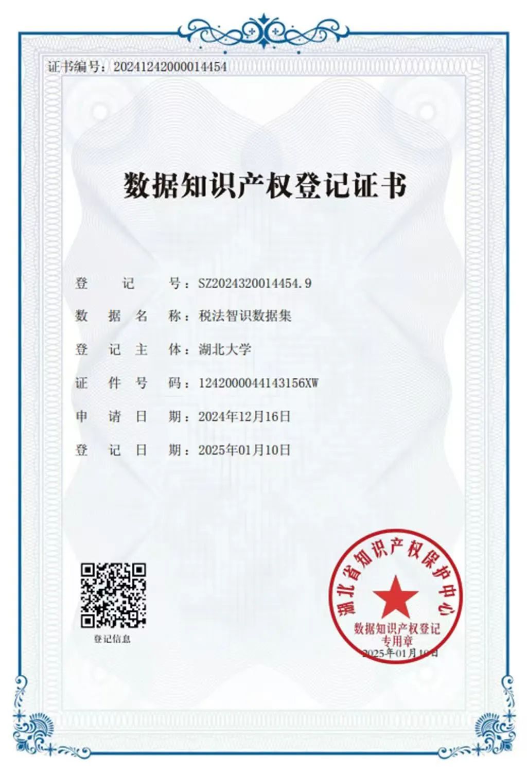 近日,记者从区市场监督管理局获悉,湖北大学的“税法智识数据集”通过东西湖区数据知识产权保护工作站办理,成功获得数据知识产权登记证书,这是湖北高校完成的首例数据知识产权登记。
