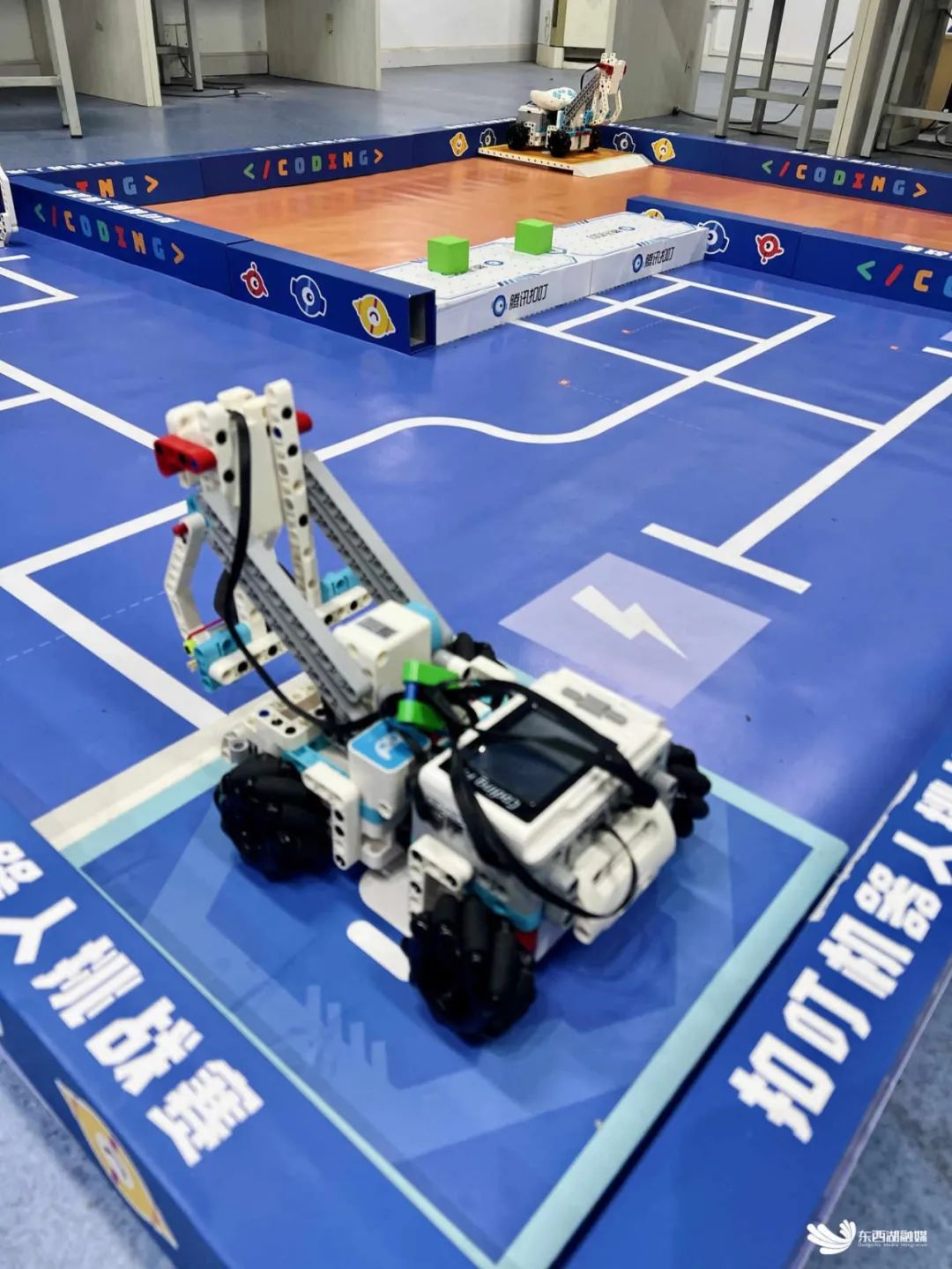 正式比赛中,龙宇轩负责编程,汤睿杰负责遥控操作,两人凭借扎实的技术和默契的配合,操控机器人在3分钟内完成了放置能量块、夹取各色方块、建立通讯及小车回家等全部任务。