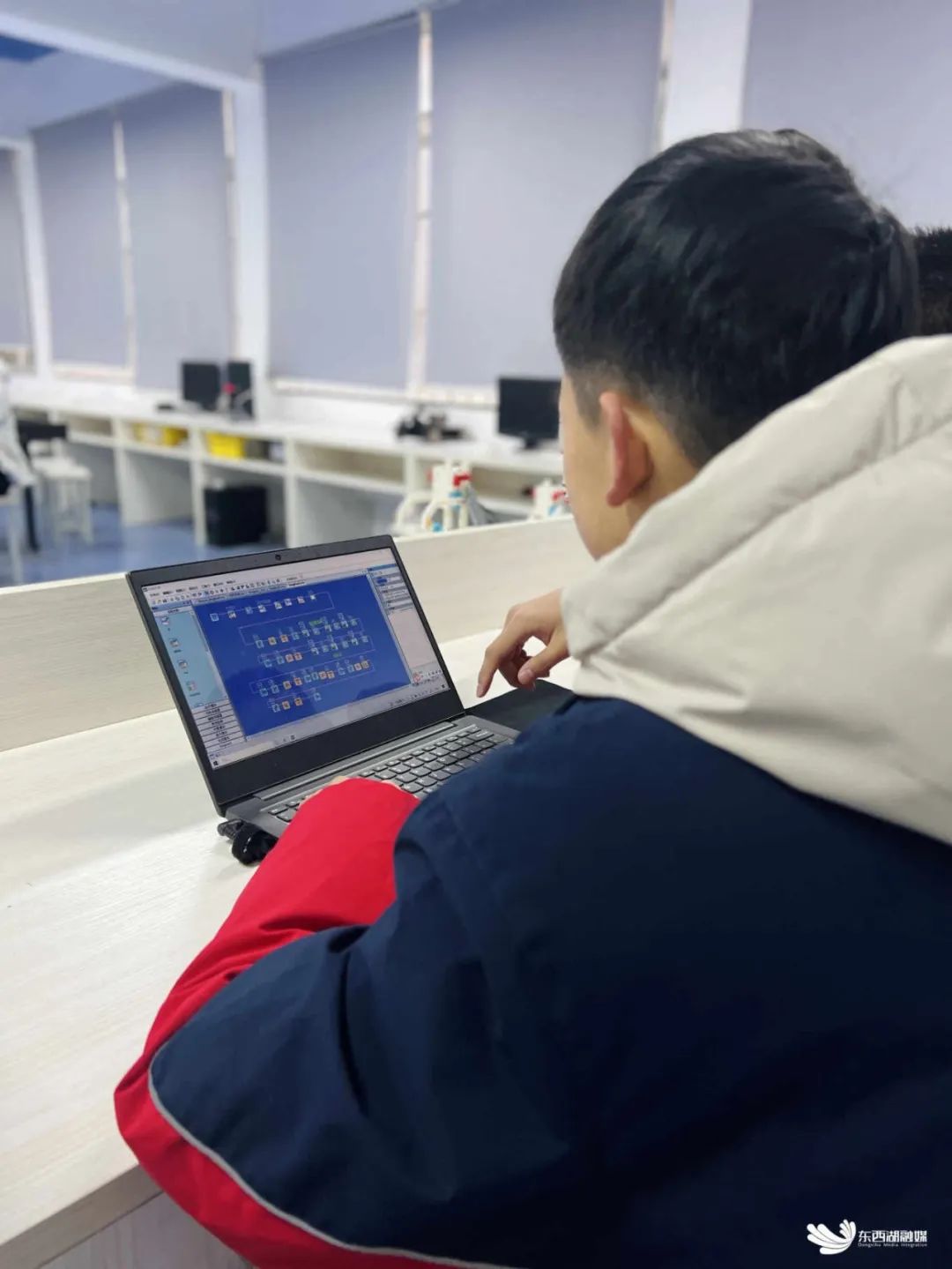 龙宇轩和汤睿杰正在调试代码。