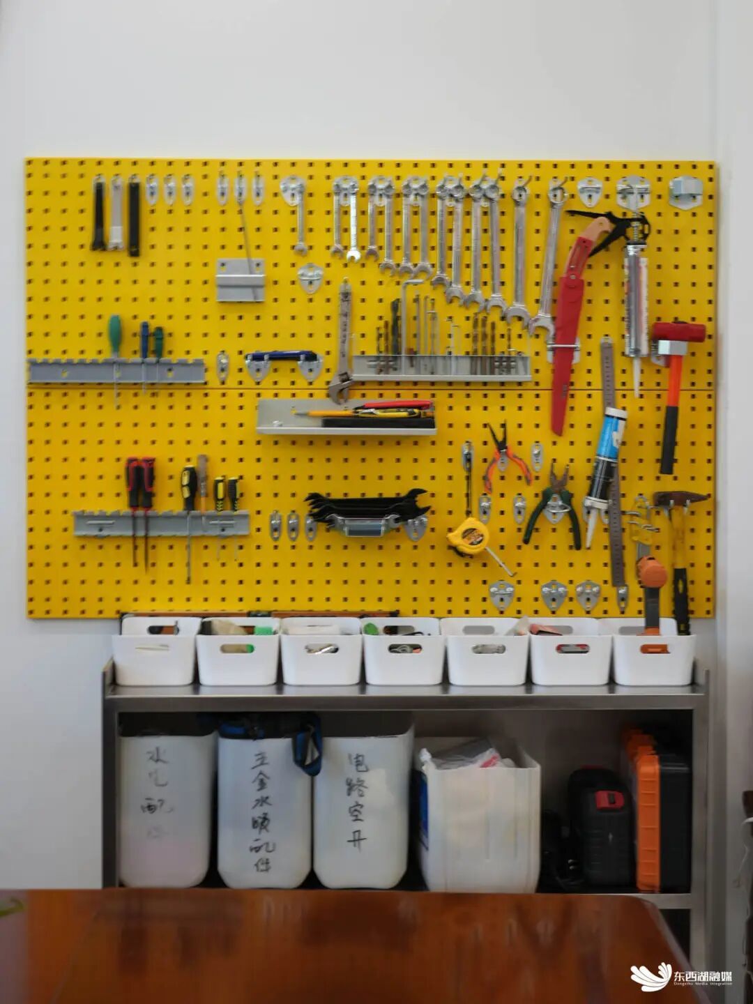 劳模创新工作室内,墙上悬挂的数十种专业修理工具。