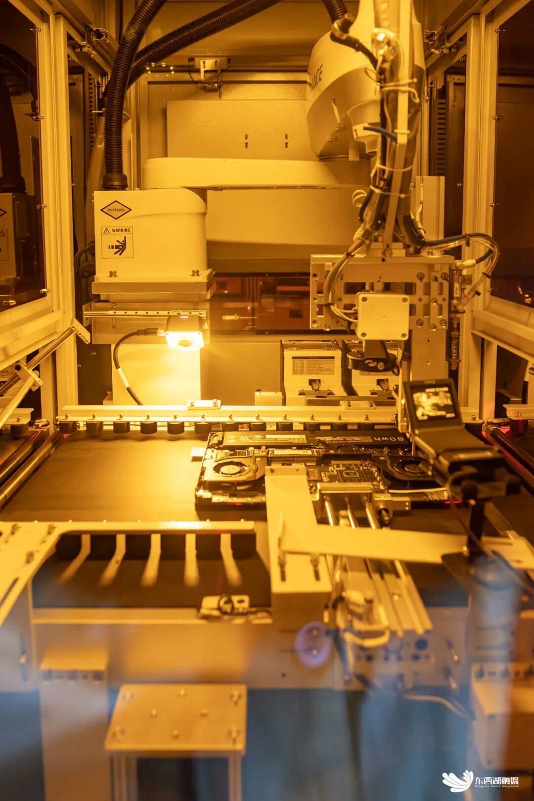 在宝龙达SMT生产车间,仅20秒就可以完成主板的雕刻序号、锡膏印刷、贴片、焊接等流程。1条笔记本电脑整机生产线每小时产出250台笔记本,并自动完成检测,精度与效率均为行业标杆。