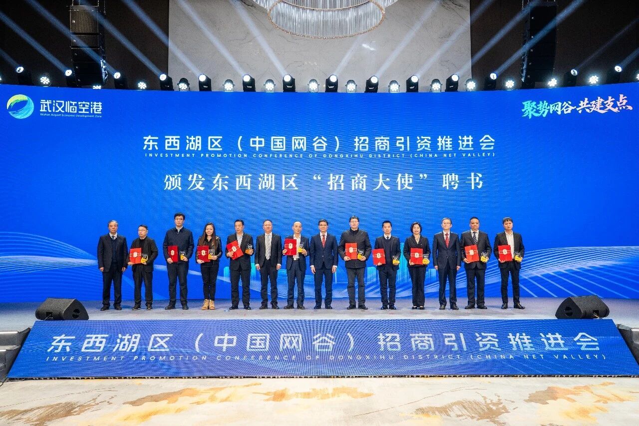 区领导向东西湖区“招商大使”颁发聘书。