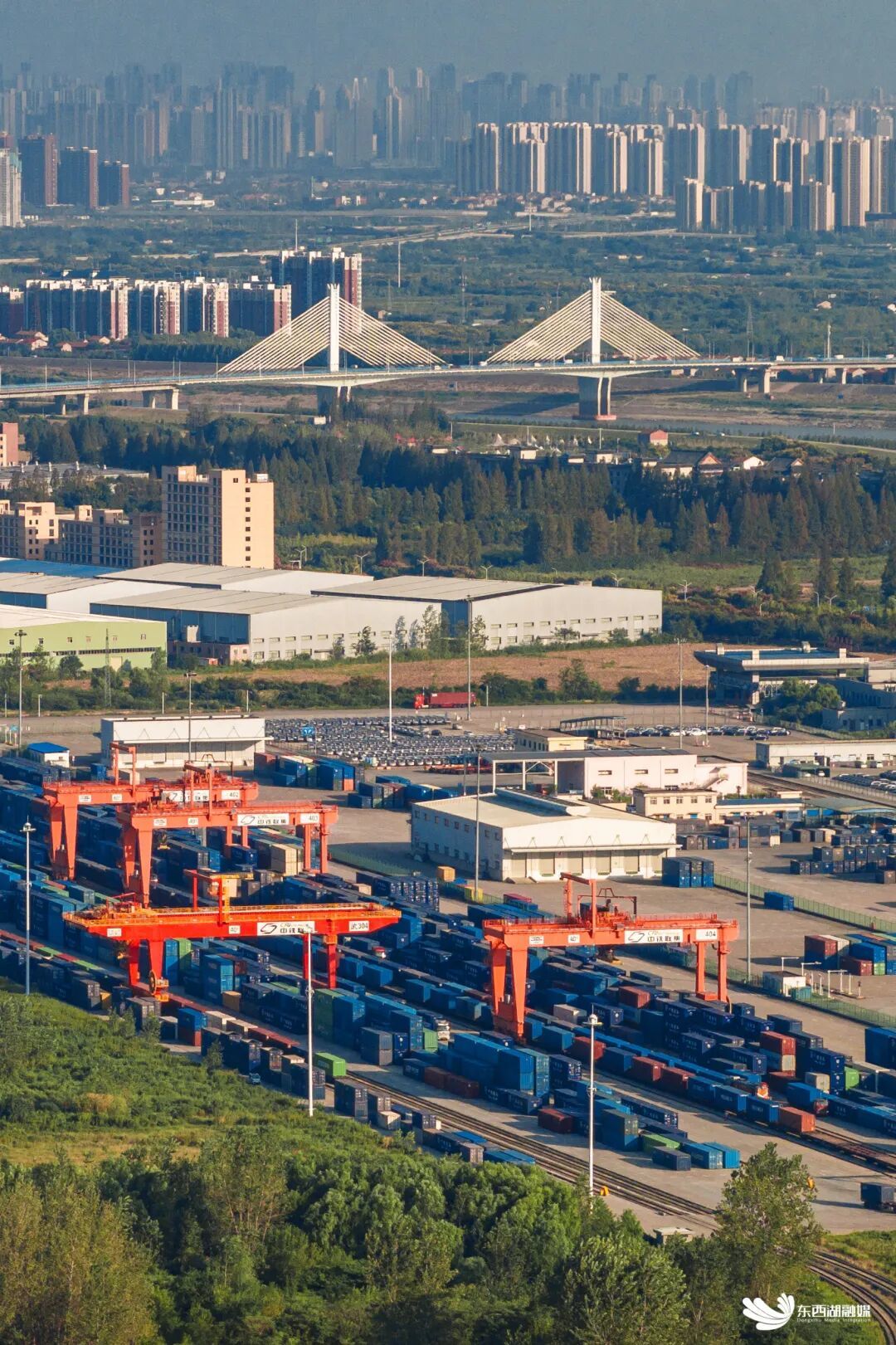铁路、公路、水路在武汉陆港枢纽核心区交集。