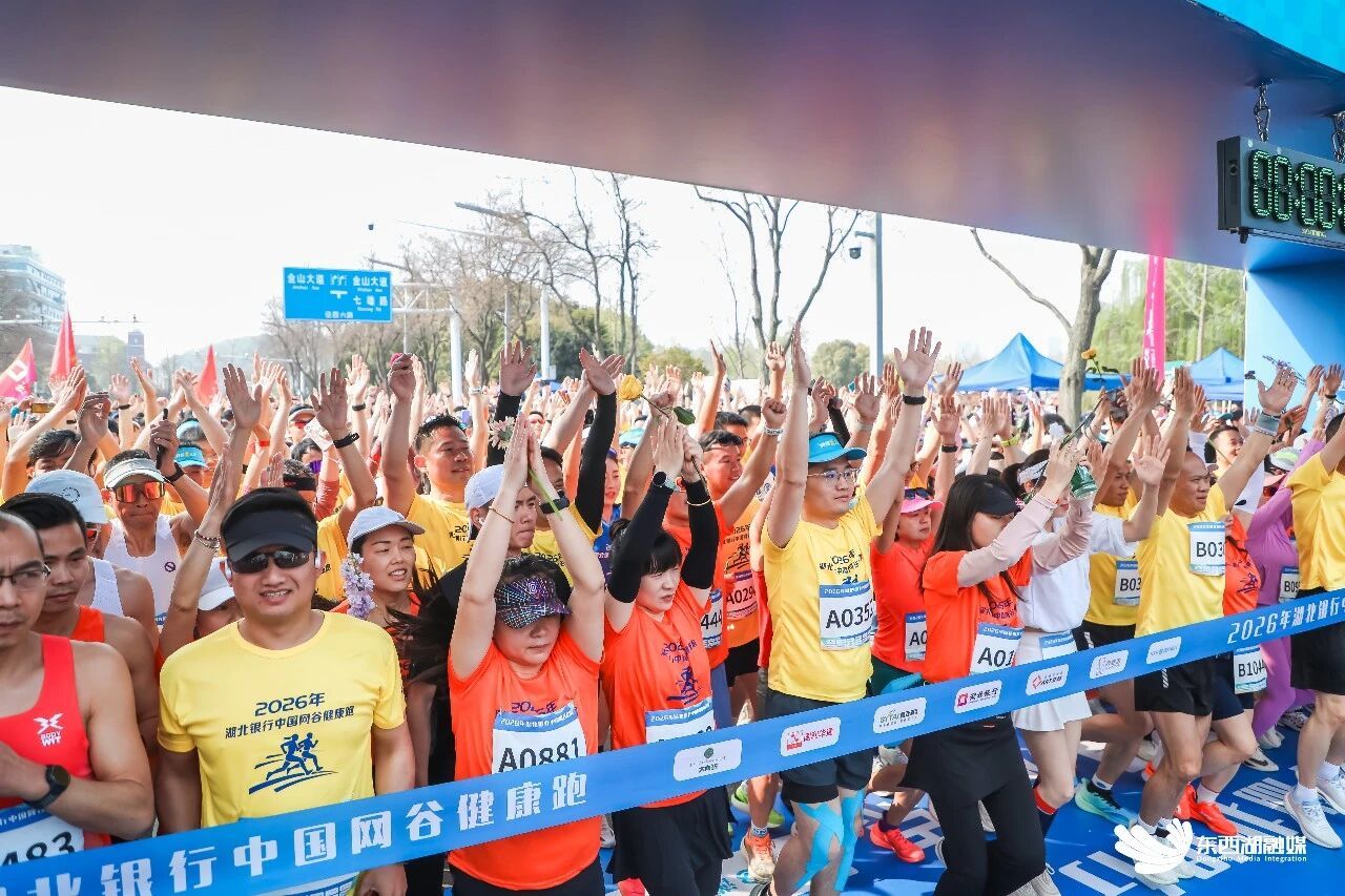 春和景明,樱漫溪岸。3月29日一早,东西湖区码头潭文化遗址公园东门广场跑者云集、活力涌动。2026年“中国网谷”文旅游线推介会暨湖北银行网谷健康跑在此举行。