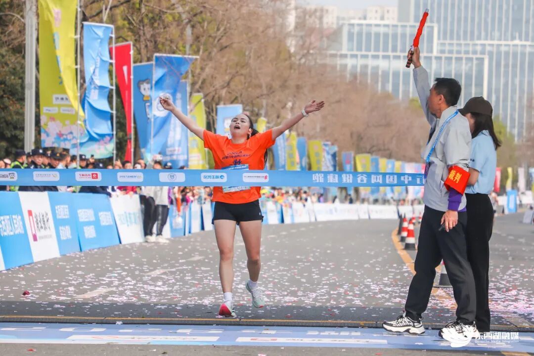 起跑后44分30秒,付荃冲过终点夺得男子组冠军,严淑芳以54分01秒成绩获得女子组冠军。