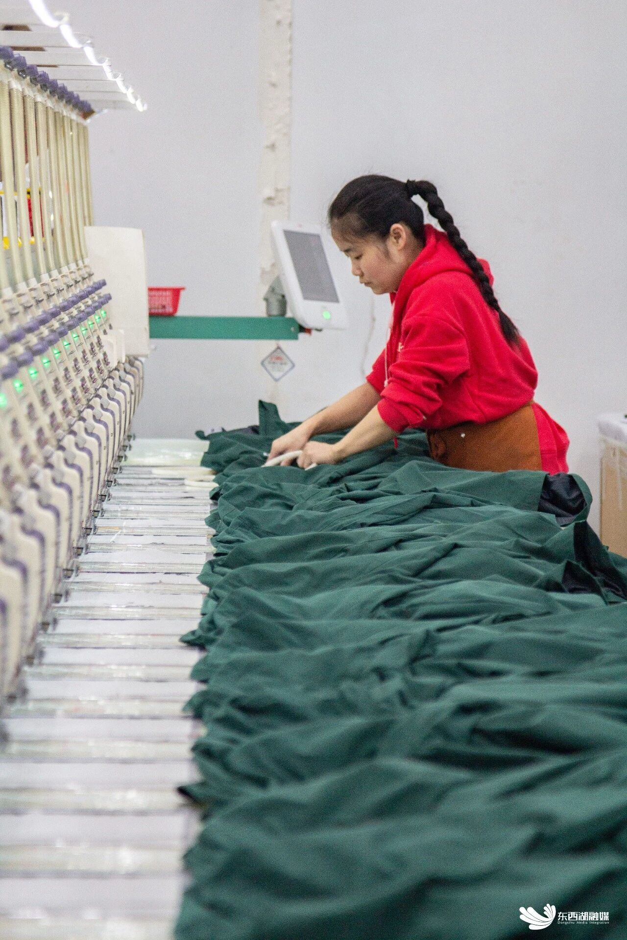 近日,径河街道国利华通职业工装电商产业园(以下简称“国利华通”)的印花车间内,机器高速运转,图案精准呈现;仓储物流区里,工人们有条不紊地打包、分拣,一件件定制工装通过完善的物流网络发往全国。从订单到出库的一站式闭环,正是这座华中地区领先的工装园区高效运转的密码。