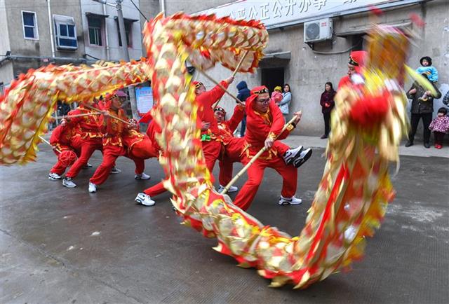 舞龙俗称玩龙灯,是逢年过节一项重要的民俗活动。舞龙时,舞龙者在龙珠的指引下,手持龙具,随鼓乐伴奏,变换姿势,好不热闹。通过舞龙烘托节日气氛,表达了对美好生活的向往。