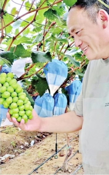 “一般情况下,阳光玫瑰葡萄亩产6000斤,但为了把控品质,在葡萄抽枝开花时,我们会剪去多出来的花穗,特意将亩产量控制在2500斤左右。以阳光玫瑰为代表的东西湖葡萄,2019年获得了‘国家农产品地理标志’登记保护,颇受欢迎。”陈海明一边介绍,一边随机摘下一颗阳光玫瑰葡萄递了过来,“虽然还没完全成熟,但现在味道也已经不错了”。果然,轻轻一咬,一阵淡淡的玫瑰清香袭来,汁水与味蕾相触,甜沁心脾。
