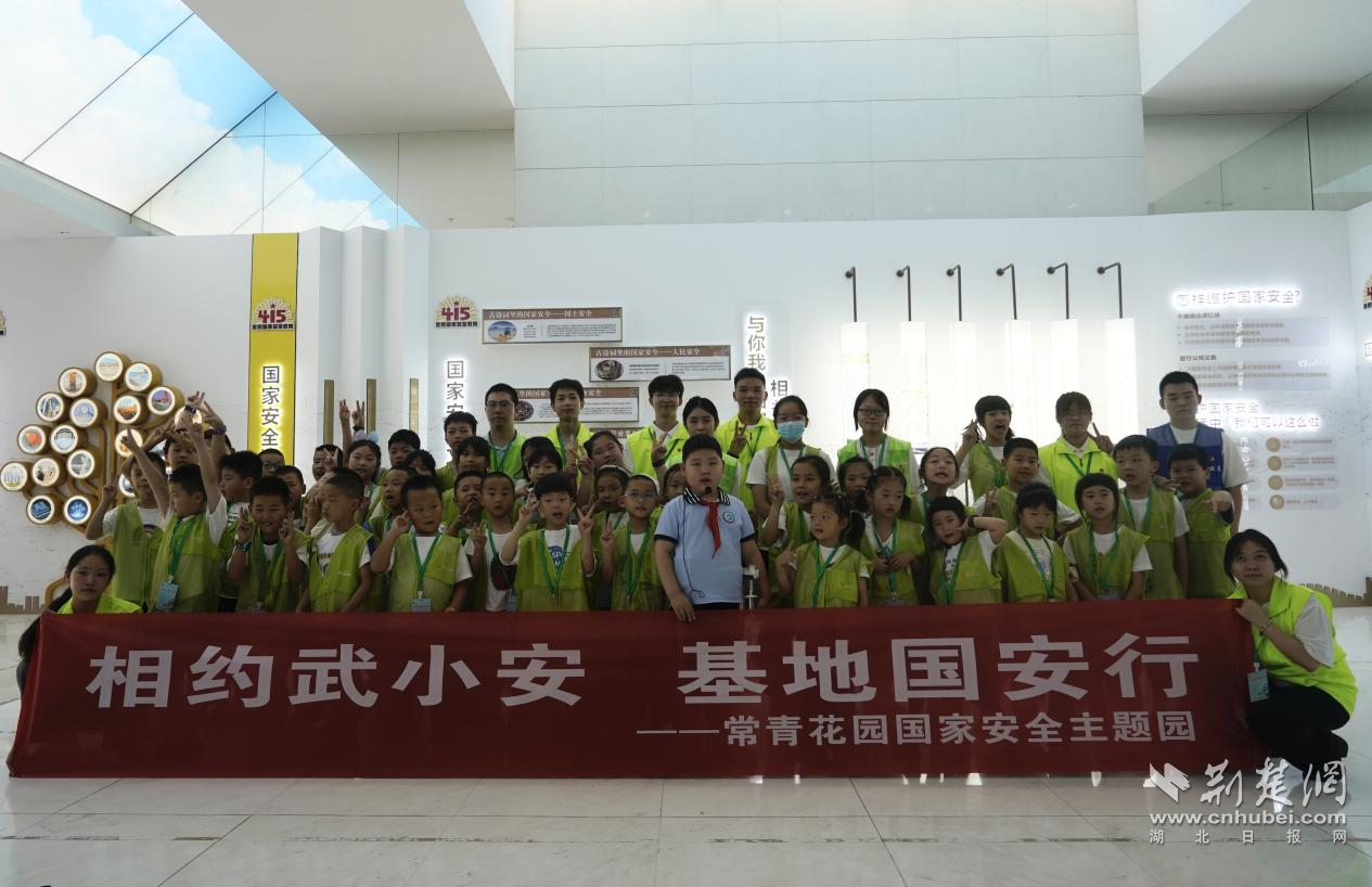 荆楚网(湖北日报网)讯(通讯员武国安宣)7月19日上午,以“呵护生命 拒绝毒品”为主题的基地研学活动在东西湖区常青花园国家安全主题园举办。参观国家安全教育基地听讲解员介绍国家安全相关知识、看“武小安”国家安全教育MG动画、听禁毒社工讲授拒毒小知识、参与禁毒互动问答,50多位小朋友开展了一场别开生面的国家安全之旅。