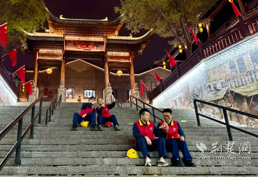为应对客流高峰,国网武汉供电公司双节期间不间断保电,保电人员与景区电工联合编组,24小时值守,双节期间每天至少会进行一次景区巡视,确保古老民俗艺术顺利呈现。