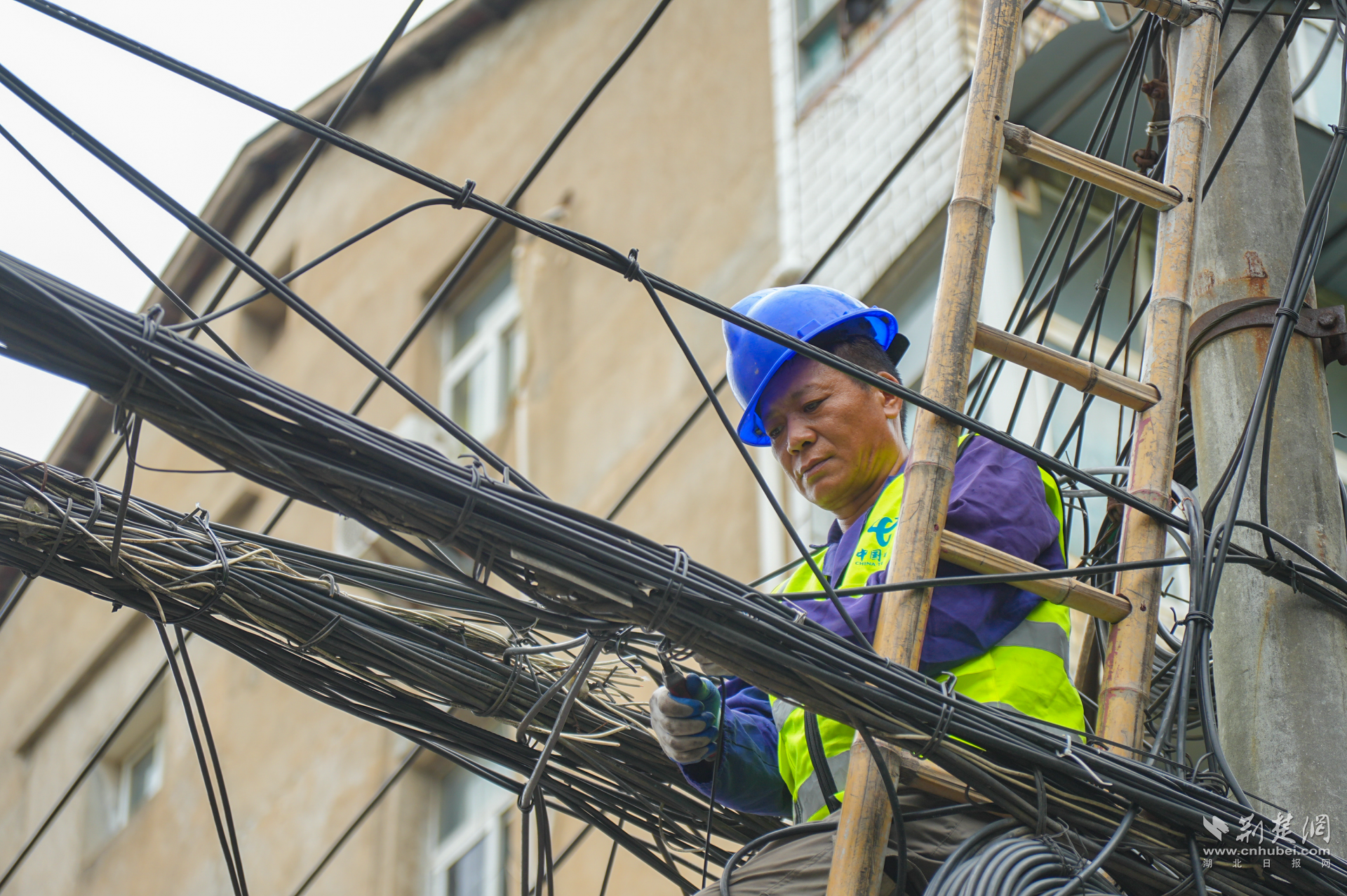 改造启动后,新挑战接踵而来:错综复杂的架空管线、商户出店经营、车辆违停影响施工......