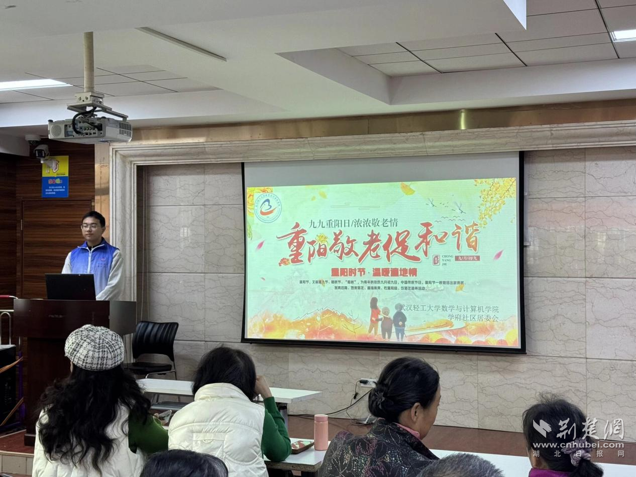荆楚网(湖北日报网)讯(记者唐天琪 通讯员吴东豪)10月26日上午,在重阳佳节即将来临之际,武汉轻工大学数学与计算机学院“一封家书”编辑部,携手“星火”退役军人志愿者服务队,走进武汉市东西湖区学府社区,与社区老年人共同开展了一场以“金秋重阳暖,浓情系桑榆”为主题的活动,用青春陪伴传递尊老敬老爱老的传统美德。