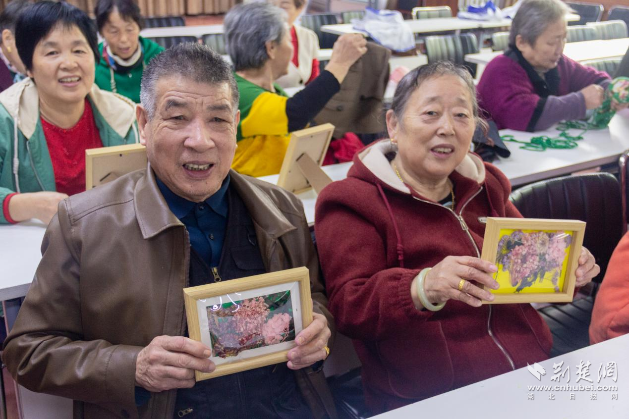 同学们带着象征重阳习俗的菊花与茱萸材料,与老人们结对而坐。“李奶奶,茱萸有辟邪祝福的寓意,菊花代表长寿安康,我们把秋天和祝福一起‘装’进画框里吧!”郑心瑜同学一边介绍,一边耐心协助老人将片片茱萸叶与金色菊花搭配入框。