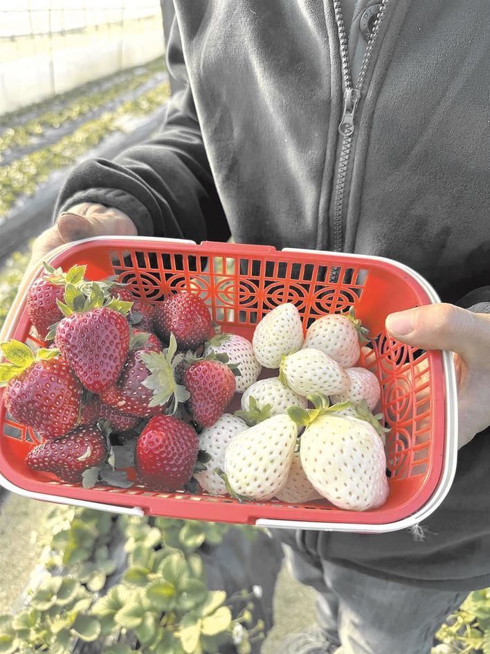 左为黑珍珠草莓,右为白草莓 通讯员供图