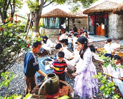 “村里咖啡”周末接待大量亲子家庭游客。