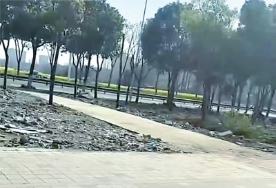 小区物业王经理告诉记者,小区曾差点烂尾,开发商遗留问题较多。按照规划,门面与革新大道之间应有一条连通路,但至今未建。近日,物业出资修了一条0.5米宽的水泥便道,但因城管部门不允许进行路面硬化,便道地基未铺碎石,使用两天就被雨水浸泡导致损坏。