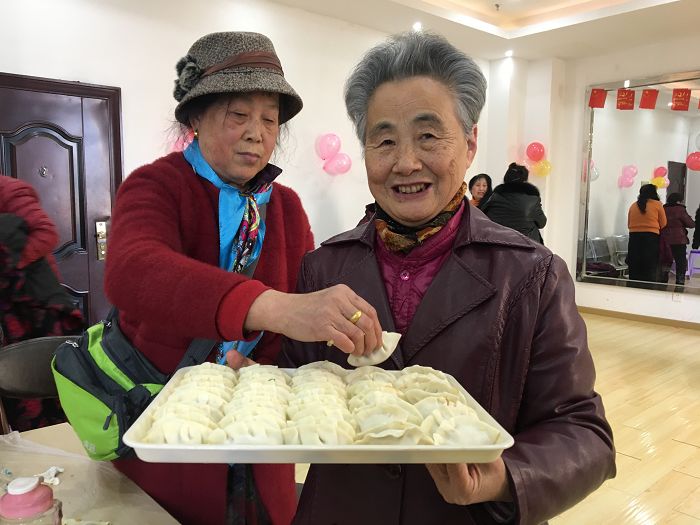 记者刚走进活动室便听见笑声和吆喝声,老人们聚在一起包饺子、唠家常,现场热闹非凡。大家有擀皮的,拌馅的,包饺子的,煮饺子的,大家互相切磋着手艺,你追我赶还时不时的交流各自的技巧,一只只白白胖胖的饺子便一脸“傲娇”地占满了几个竹筛。不一会儿一碗碗热气腾腾的饺子端上了桌面,大家围坐在一起分享劳动美味,感受舌尖上的邻里情。