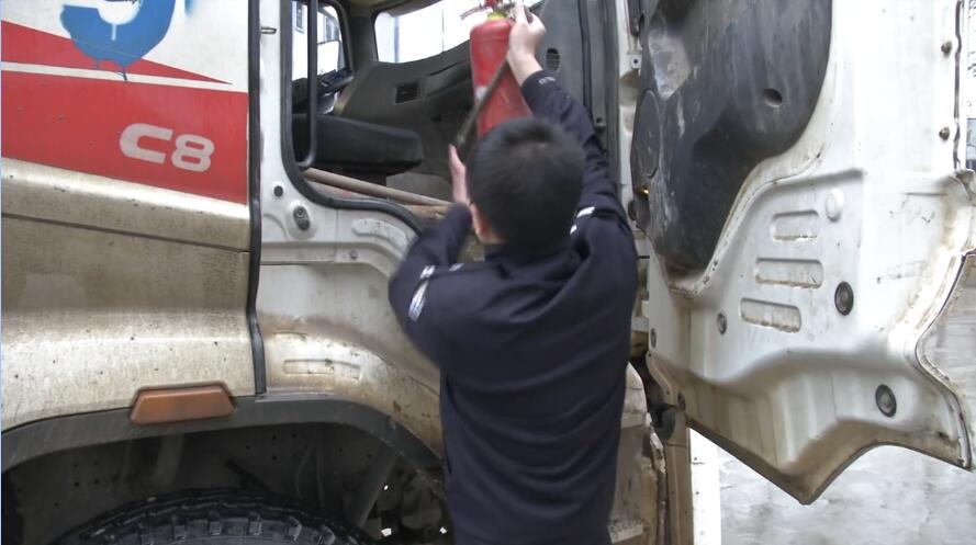 东西湖区交通大队民警钟实:“我们到车上主要是,一个检查车辆外观,比如前面的牌照,后面的放大字号是否清晰,车内的比如说灭火器的放置,车辆的安全措施,驾驶员的情况进行一个检查。”