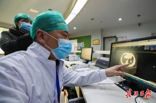2020年2月23日,武汉市红十字会医院,老范正在查看一位患者的CT影像 记者陈卓 摄