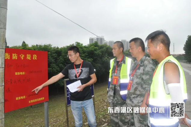 走上东西湖汉江干堤长青街防守堤段,可以看到一群党员干部忙碌的身影。在这支防汛队伍里面,有一位颇有“名气”的巡堤人,他就是长青街农服中心副主任薛刚。