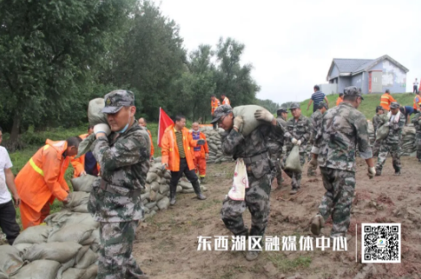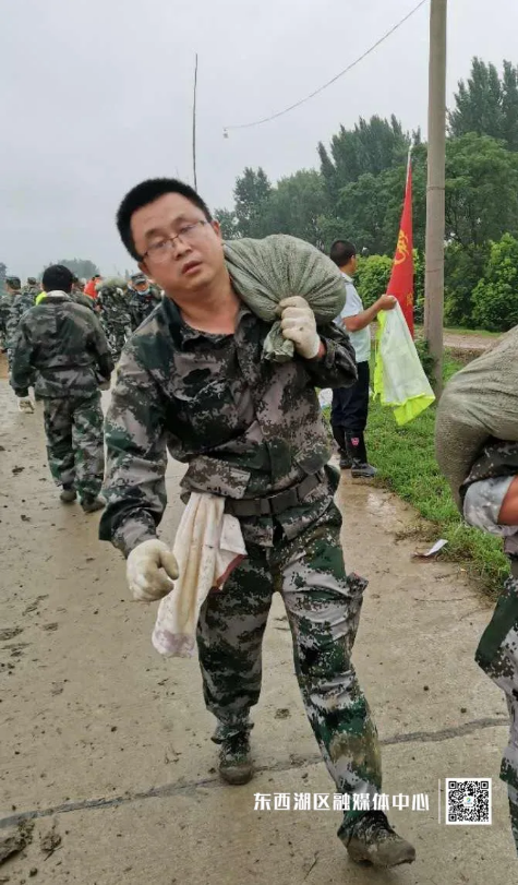 同样刚从夜班岗位下班就赶赴防汛备料现场的还有城管队员彭进凯,从防疫到防汛,他一直坚守在一线,践行着为民服务的初心。