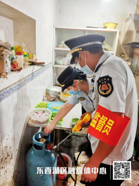 7月16日,东山街城管所执法队员前往辖区东山集镇餐饮胡姓商户家中进行汛期燃气安检,指导及帮助商户正确、安全使用燃气设施。