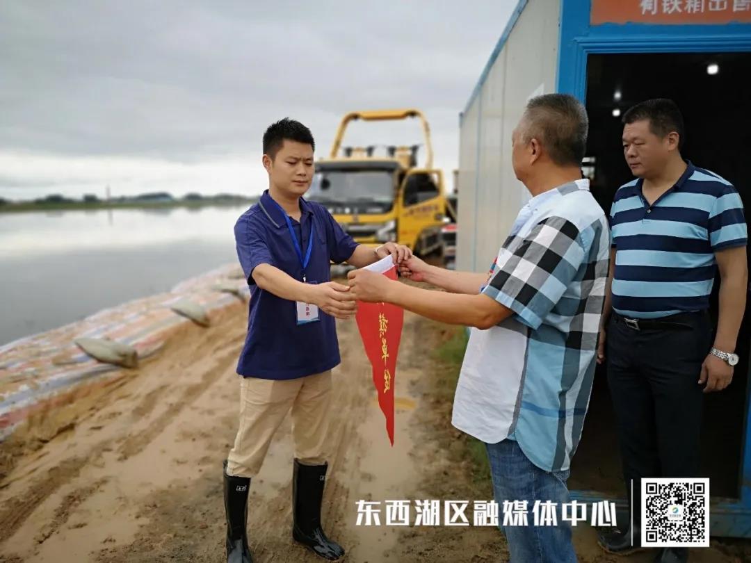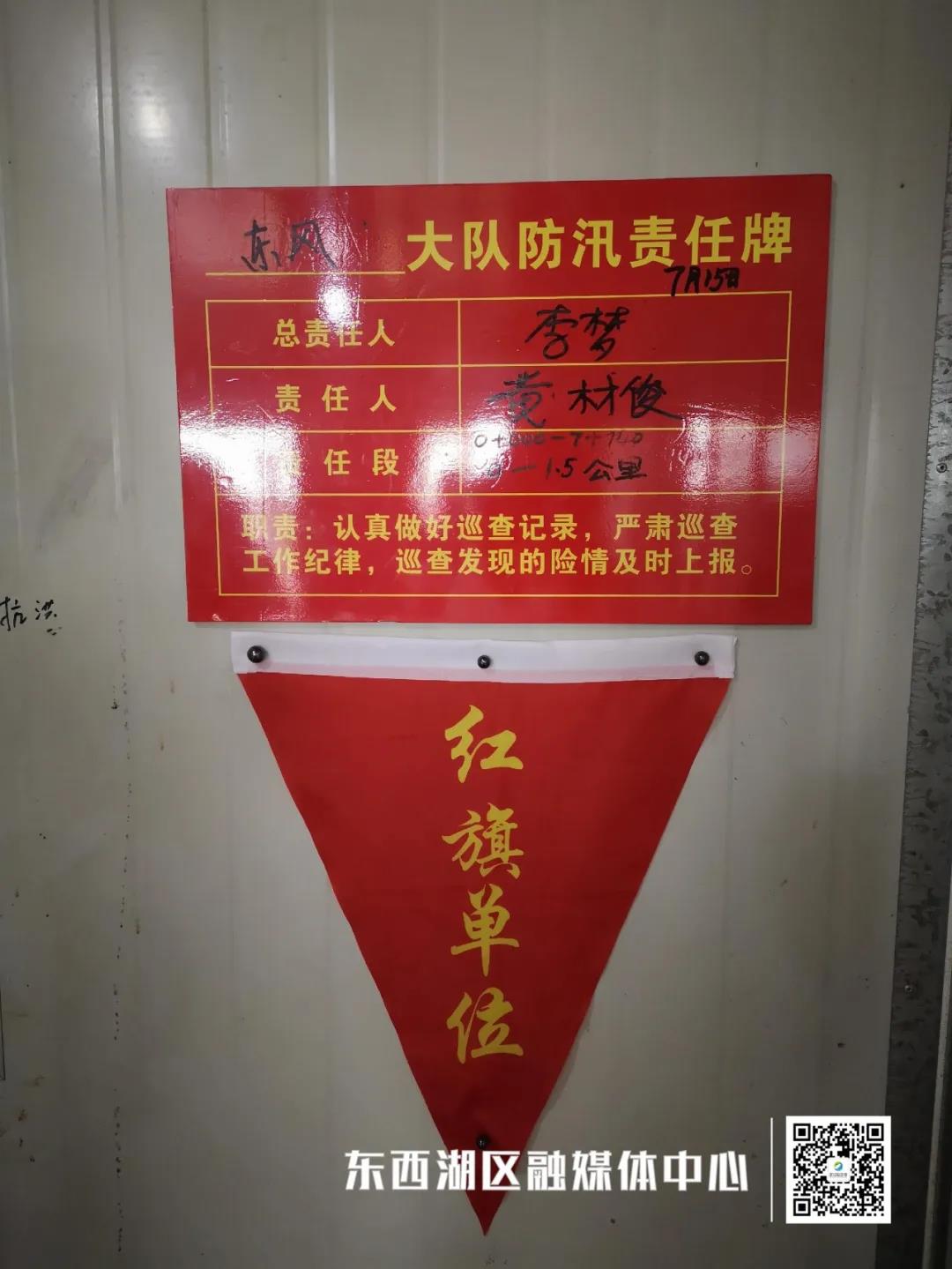 为体现公正性,每天评审小组都会对堤防沿线进行不少于3次检查,下午5点,通过各项分值评比,东风大队获得了当日的流动红旗。