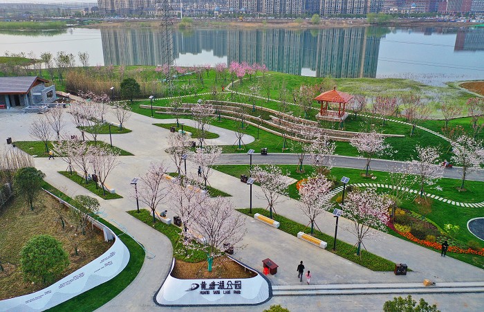 黄塘湖公园、金银潭公园、极地海洋公园这3座公园所凭依的湖泊,历史上是同一座大湖,名叫黄塘湖。这座大湖分别被金银潭大道、宏图路分隔,成为3片相对独立的水域,但湖水在地下通过涵管相连。“一湖三园”各自独立,又浑然一体。