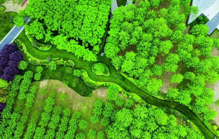 “武汉公园中首条健康主题园路”约130米,宽约4米,路面种满草坪,道路两旁是用50余种植物营造的连绵“花境”。