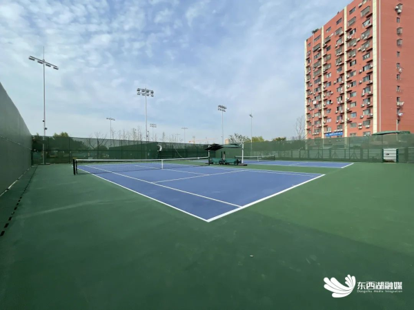 在东西湖区府河大堤以南,盘龙城大桥以西,宏图一路以北,正在建设的碧水大道旁,8片干净崭新的网球场里,工作人员正在做最后的布置,预备即将到来的首次免费试运营。