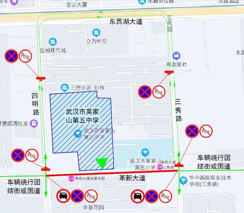 1、每日7:00-19:00,吴金路(十全路至新城十一路)禁止机动车通行、停放(恒大嘉园小区车辆可正常通行);十全路(金山大道至吴金路)禁止机动车停放、鸣笛。