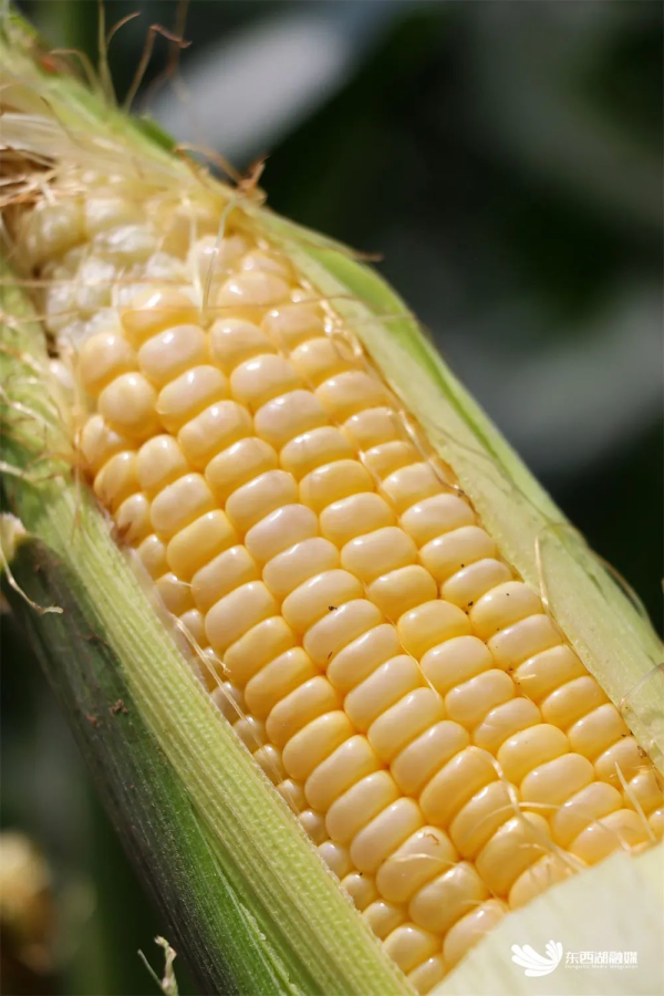 玉米米粒饱满嫩黄,外皮葱绿