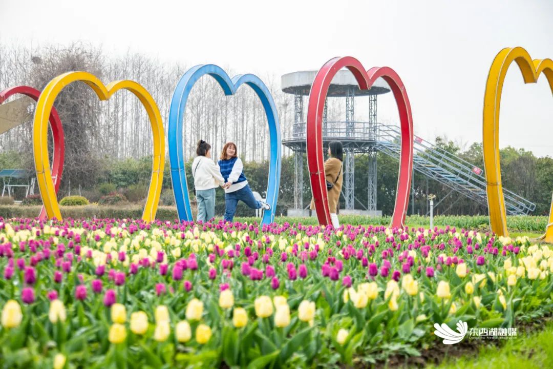 与往年花展不同,本次郁金香花展以“福兔献瑞,锦绣花朝”为主题,用68个品种的郁金香打造“玉兔点灯”“卯兔”“花仙子”等花海场景,游客赏花的同时,还可体验花神献瑞·歌舞愉宾、百花争春·花神大秀、花神祈福大典、簪花赐福、挂红祈福、寻缘百花·打卡拍摄等六大特色文化活动,沉浸式体验郁金香“国潮•花朝节”的魅力,感受春日美好与浪漫。