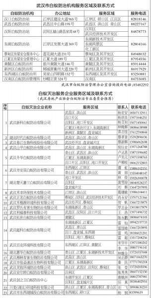 对于未实施白蚁预防的房屋或超过包治期的房屋,武汉房地产业协会推荐了一批白蚁灭治服务企业,居民可自行联系,由企业提供有偿灭治服务。(详见“白蚁灭治服务企业服务区域及联系方式”)