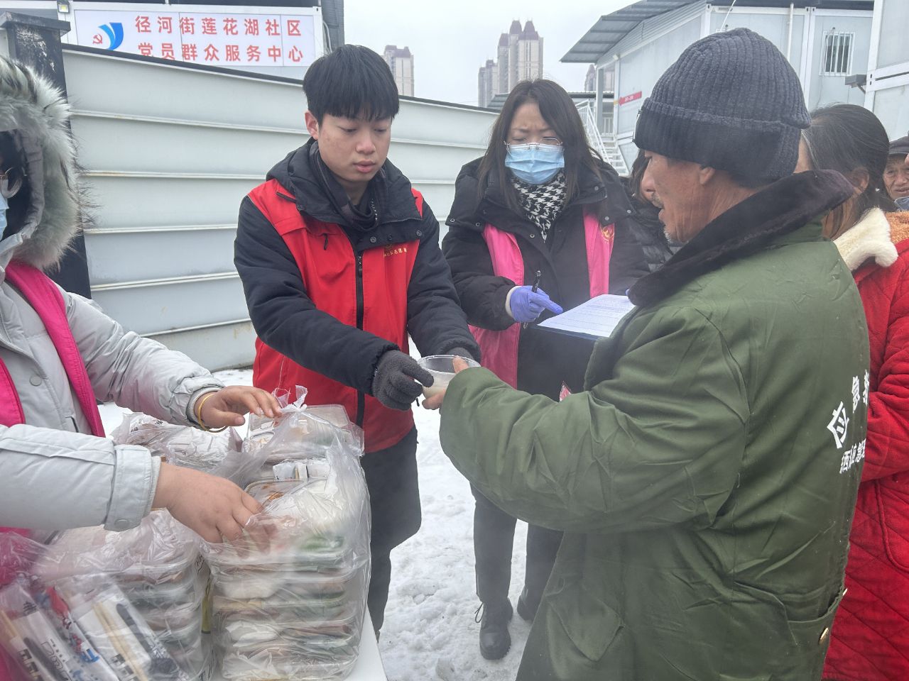 来自汉川的熊祖辉,在东西湖承包菜地已经13年了。这次下雪,他本来就想着在大棚里坚持几天,没想到被冻感冒了。在社区工作人员的劝说下,他还是打包好行李搬到了社区驿站,吃着热腾腾的汤圆,吹着暖和的空调。熊祖辉笑着说:“早知道环境这样好,早点搬过来,也许就不感冒了!”
