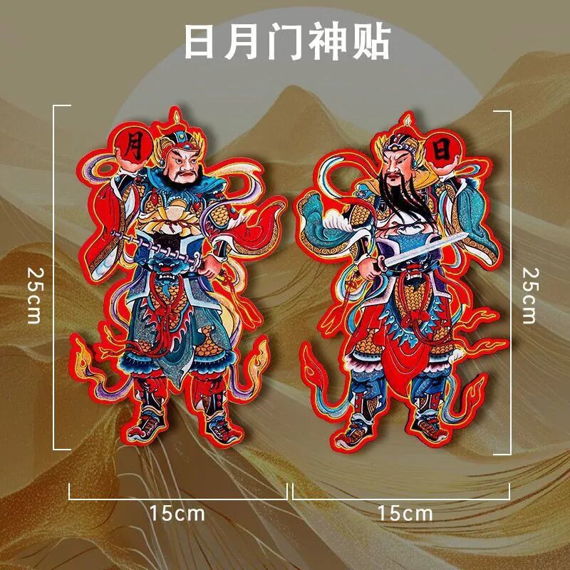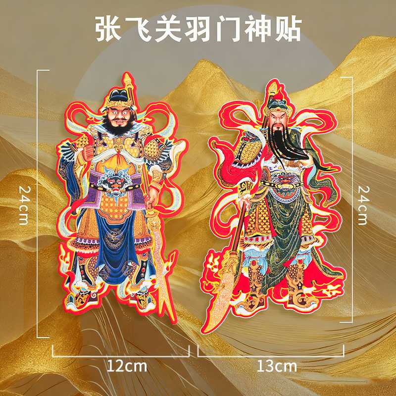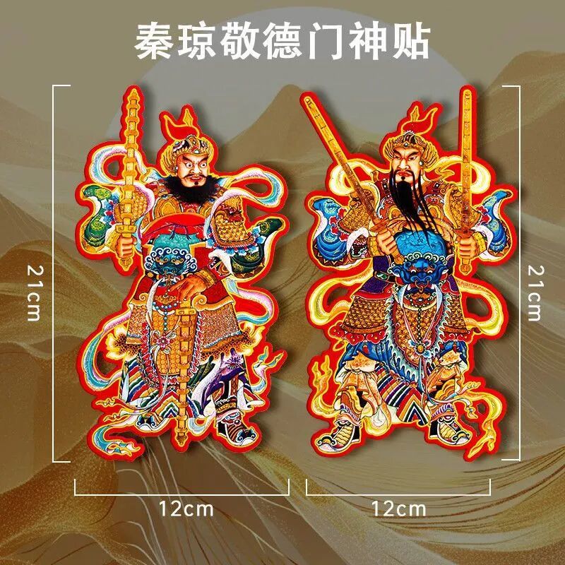 该产品将秦琼、敬德等传统门神形象以生动的方式呈现出来。色彩鲜艳饱满,笔触细腻,门神的每一根胡须都清晰可见。其神态威严,不怒自威,传统韵味与现代审美结合得恰到好处。