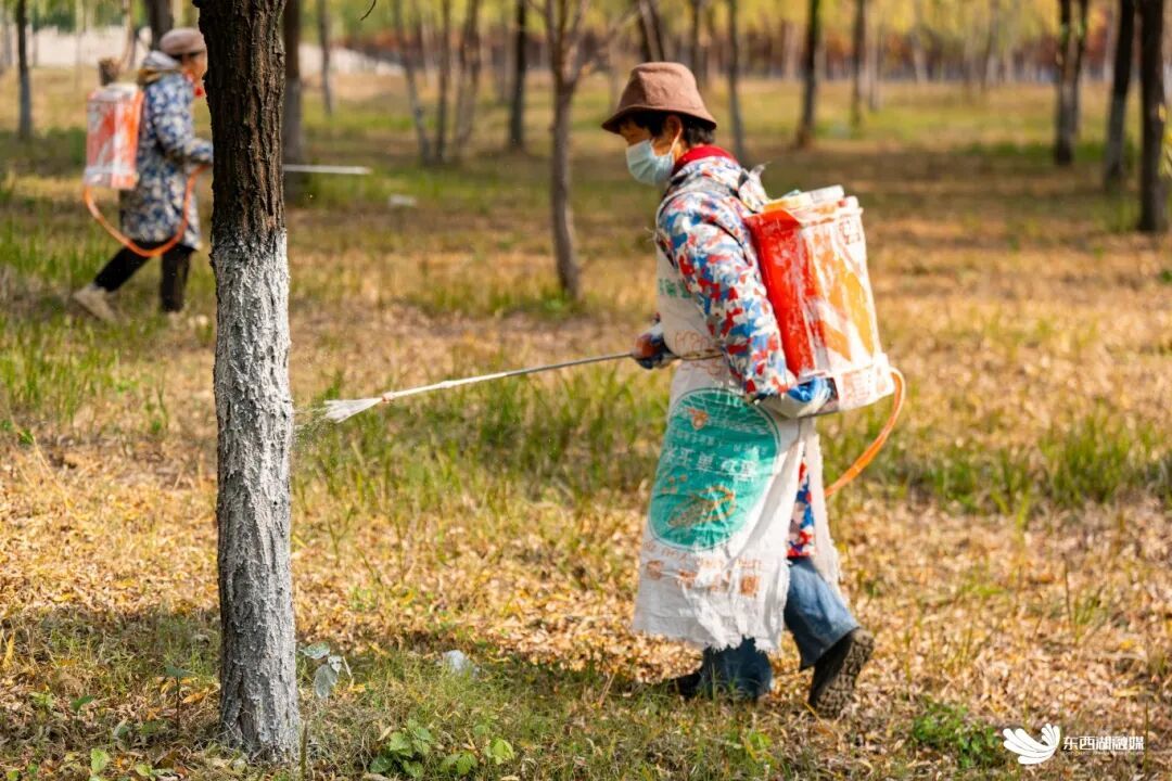 近日,汉江堤沙咀片区一片繁忙景象。工人有序调配涂白剂,为树木穿上“冬衣”。吕家湾堤防管理所副所长汪磊介绍,这是冬季“两林”(防浪林和护岸林)养护的重要一环,通过喷、刷两种方式将树木涂白至1.2米高,以增强树木抗寒防虫能力。