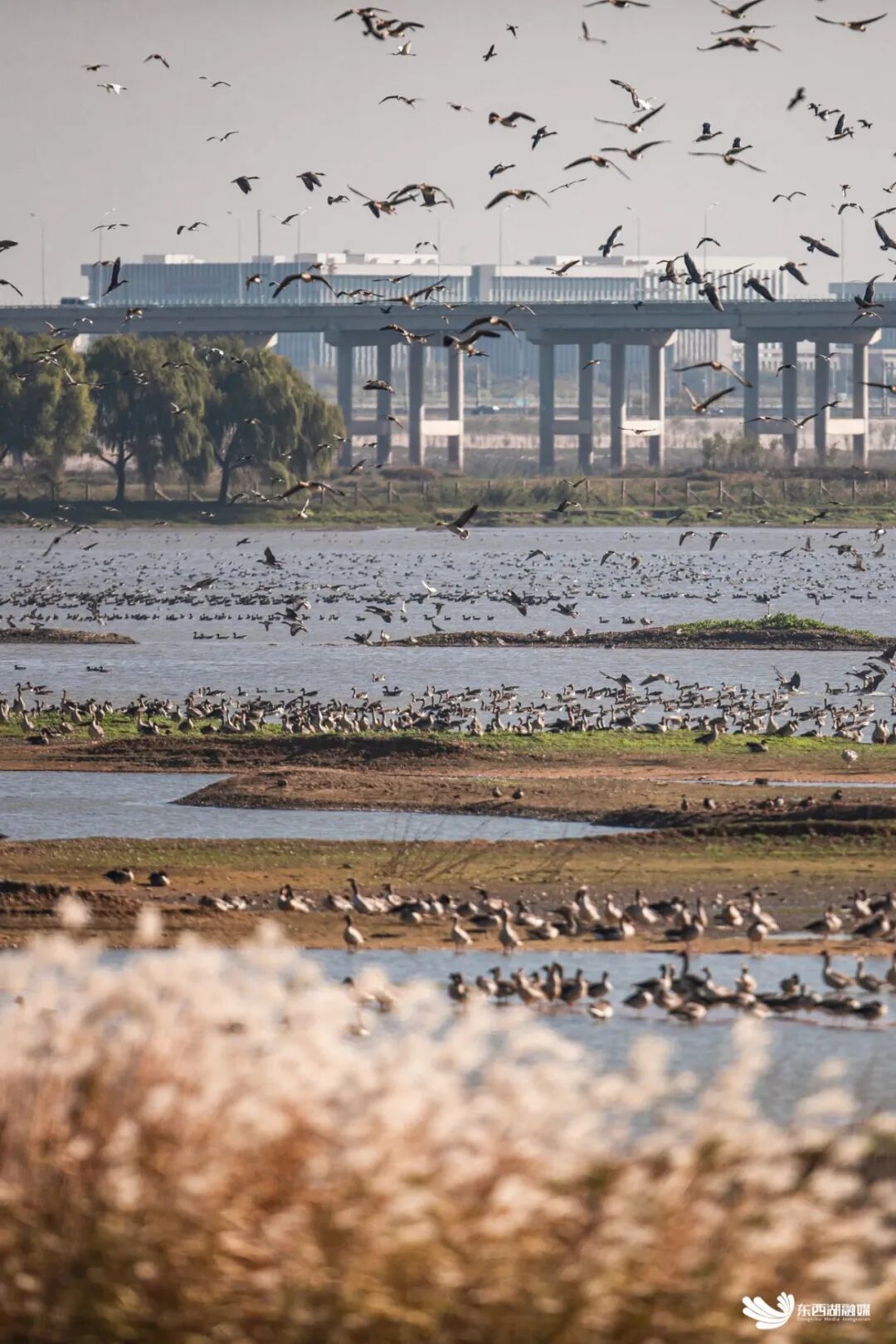 杜公湖国家湿地公园里,林带与水泽交相辉映,构建出层次丰富的湿地肌理。在柏泉街柏宋路,穿过一段香樟树隧道,府河湿地和鸟群跃然眼前,草滩、浅水、深水交错分布,每到冬季,这里万鸟云集,蔚为壮观。